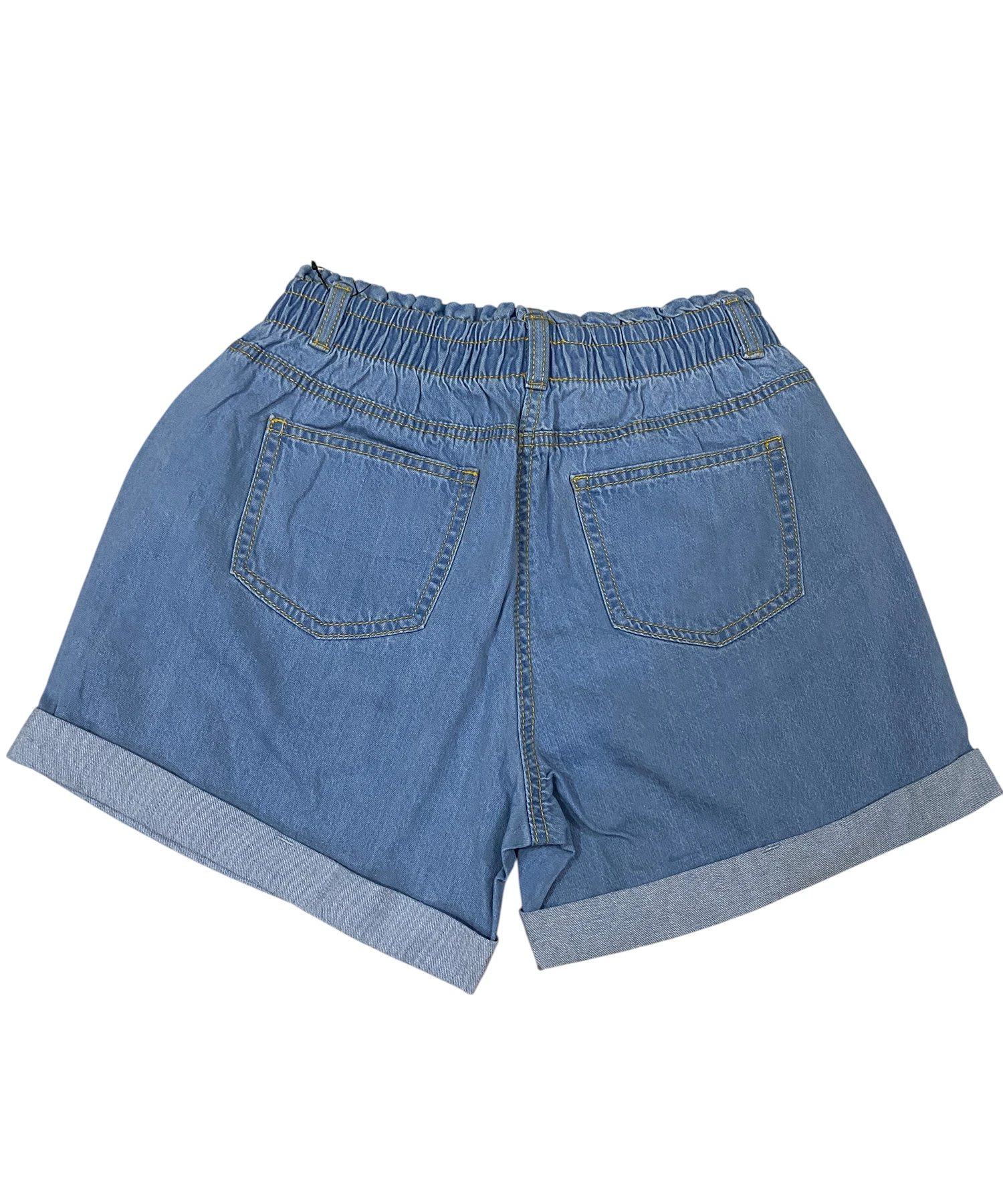 Kid Girl’s Soft and stylish double button denim shorts with elastic waistband for all-day comfort.