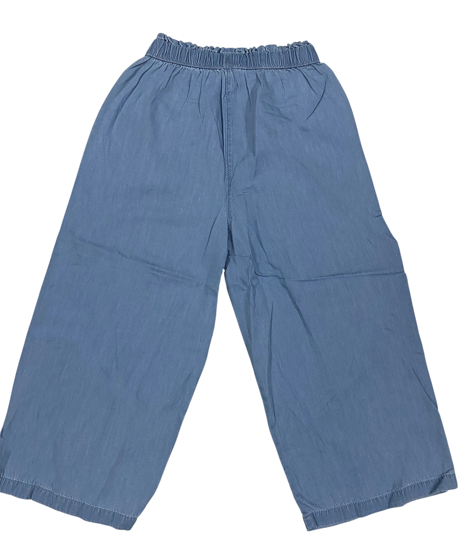 Girl’s Comfort-Fit Denim Culottes featuring a full elasticated waist and a super-wide, relaxed leg.