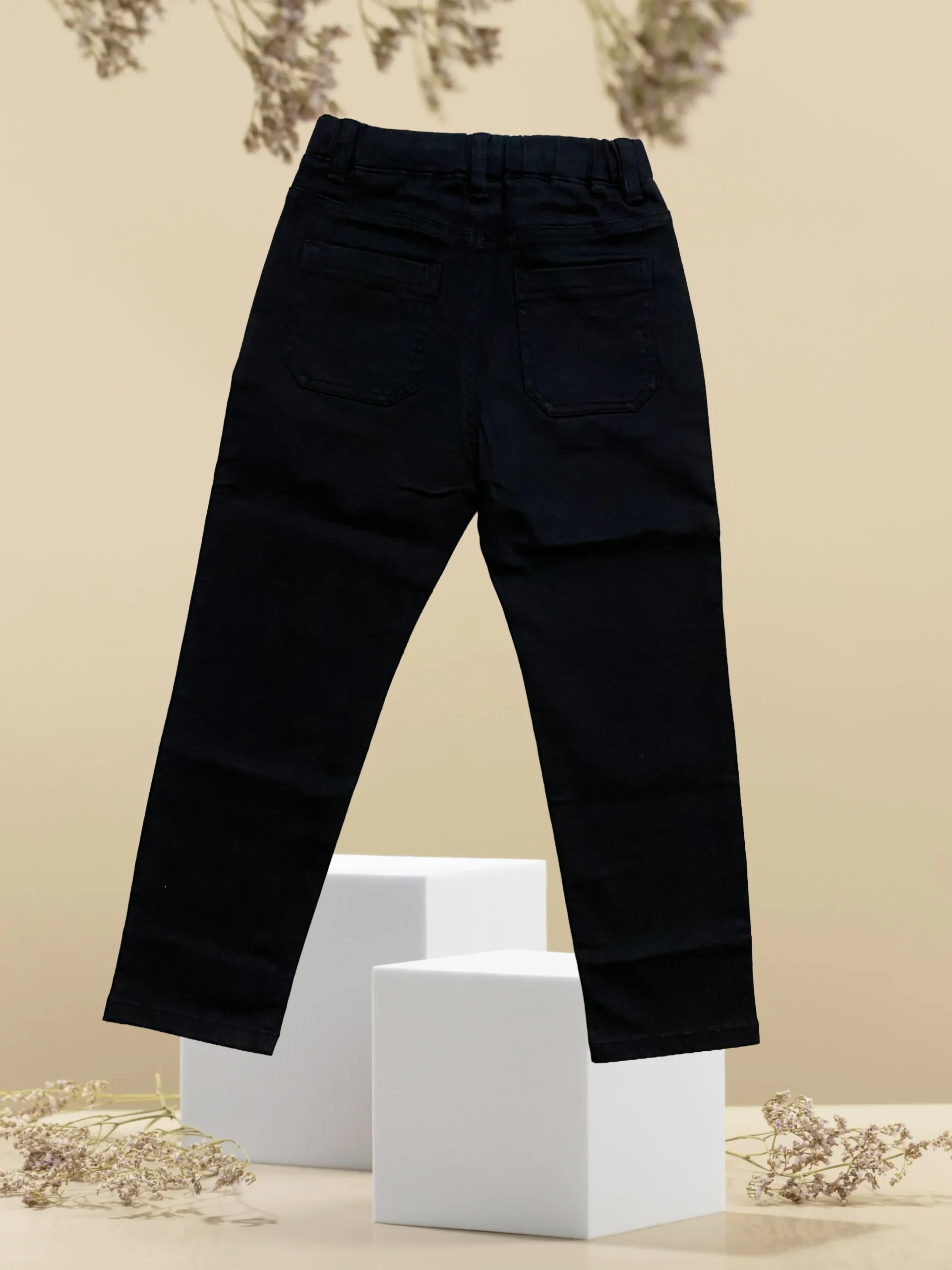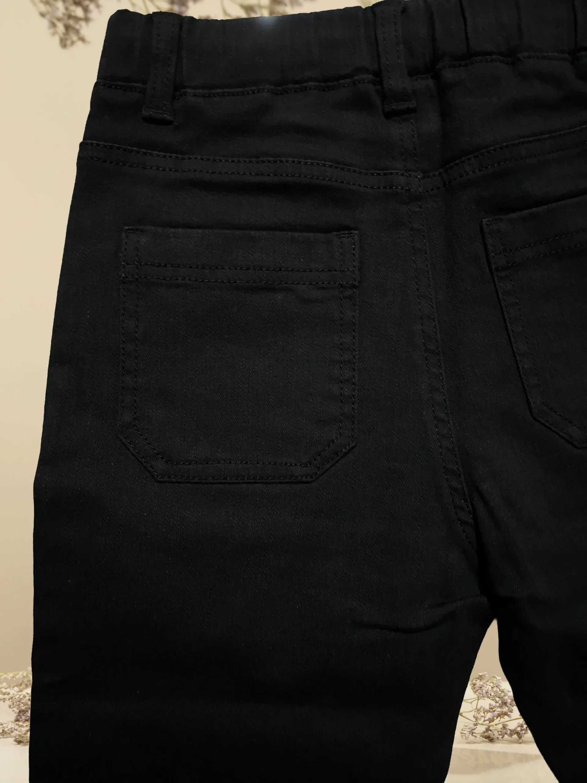 Classic black slim-fit denim trouser for kids, offering durability and everyday style.