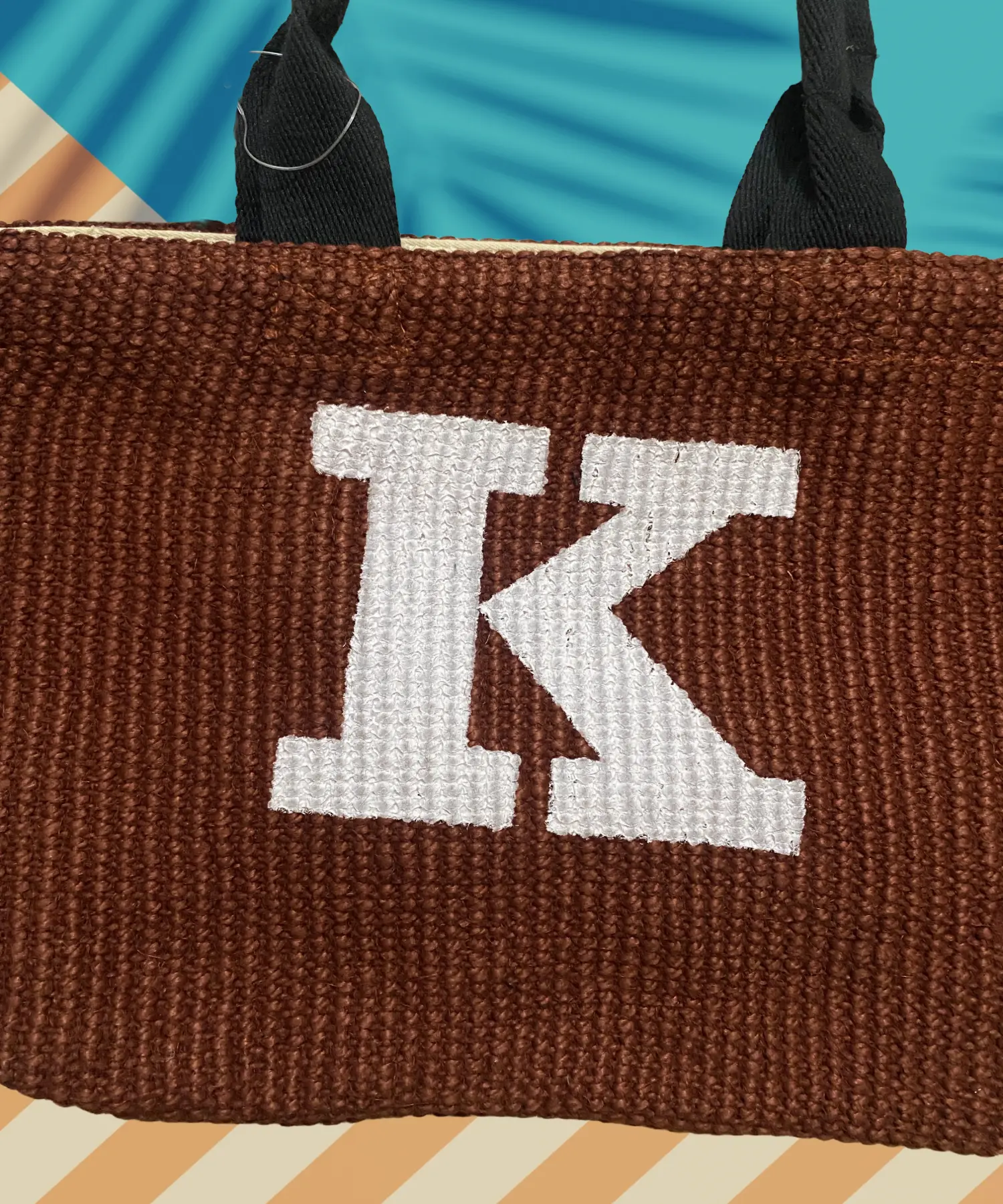 Design: Handwoven textured finish with bold front letter embroidery (customizable)